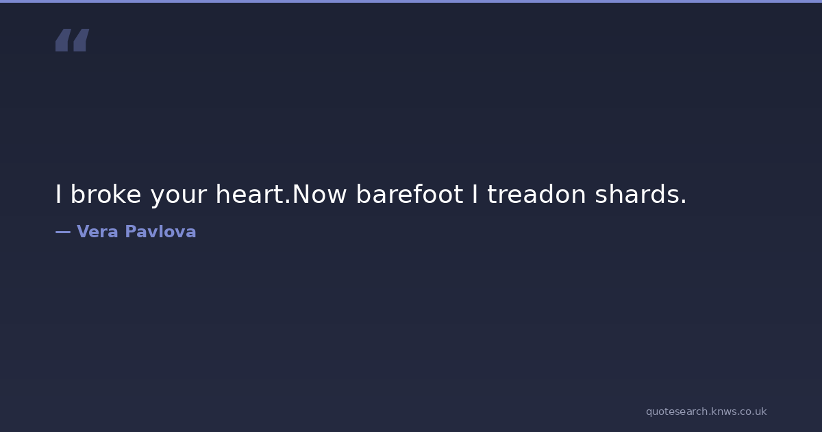 I broke your heart.Now barefoot I treadon shards. heartbreak Download Image Share on X Share on Facebook Copy Link