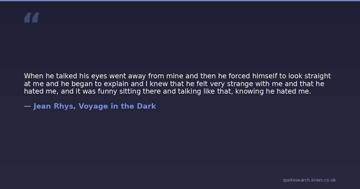 When he talked his eyes went away from mine and then he forced himself to look straight at me and he began to explain and I knew that he felt very strange with me and that he hated me, and it was funny sitting there and talking like that, knowing he hated me.