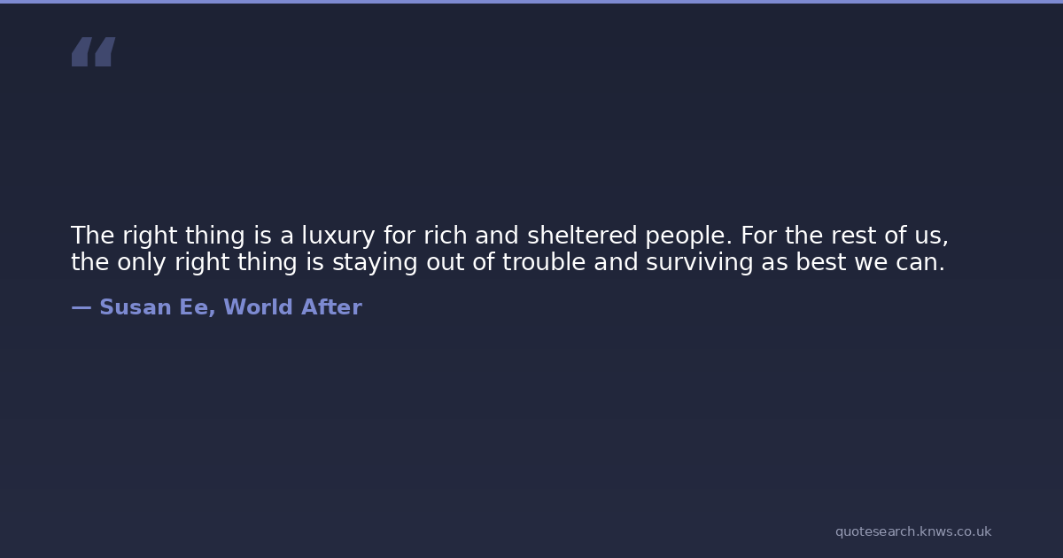 The right thing is a luxury for rich and sheltered people. For the rest of us, the only right thing is staying out of trouble and surviving as best we can.