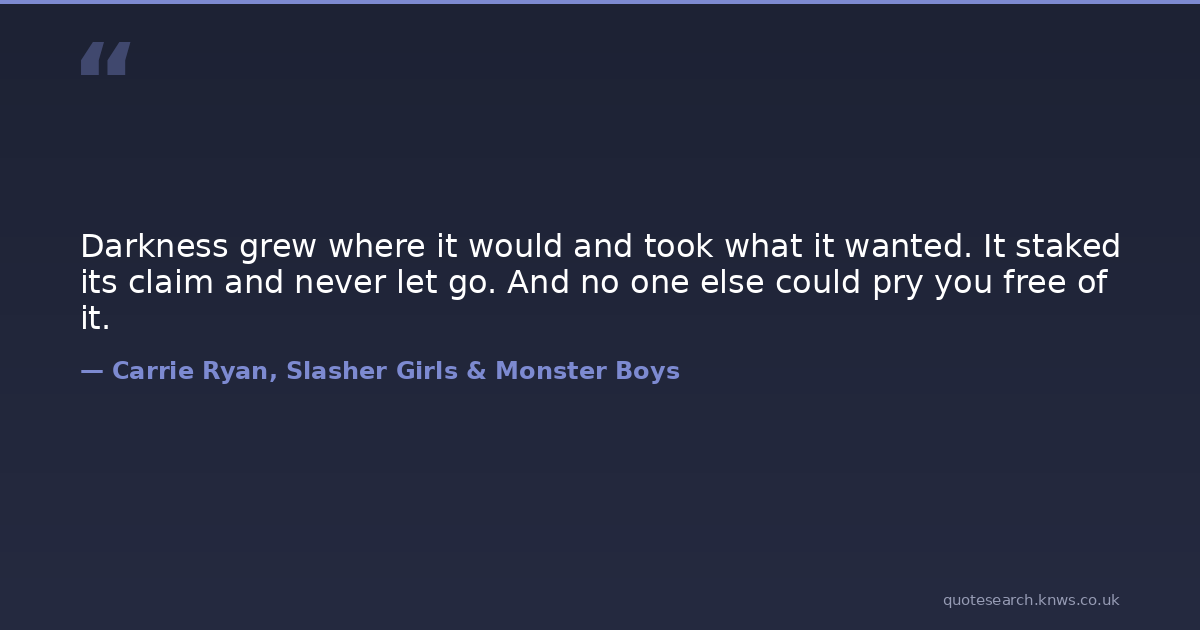 Darkness grew where it would and took what it wanted. It staked its claim and never let go. And no one else could pry you free of it.