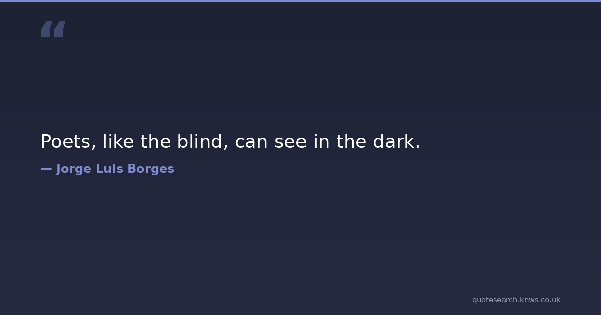 Poets, like the blind, can see in the dark. blind darkness poets vision Download Image Share on X Share on Facebook Copy Link