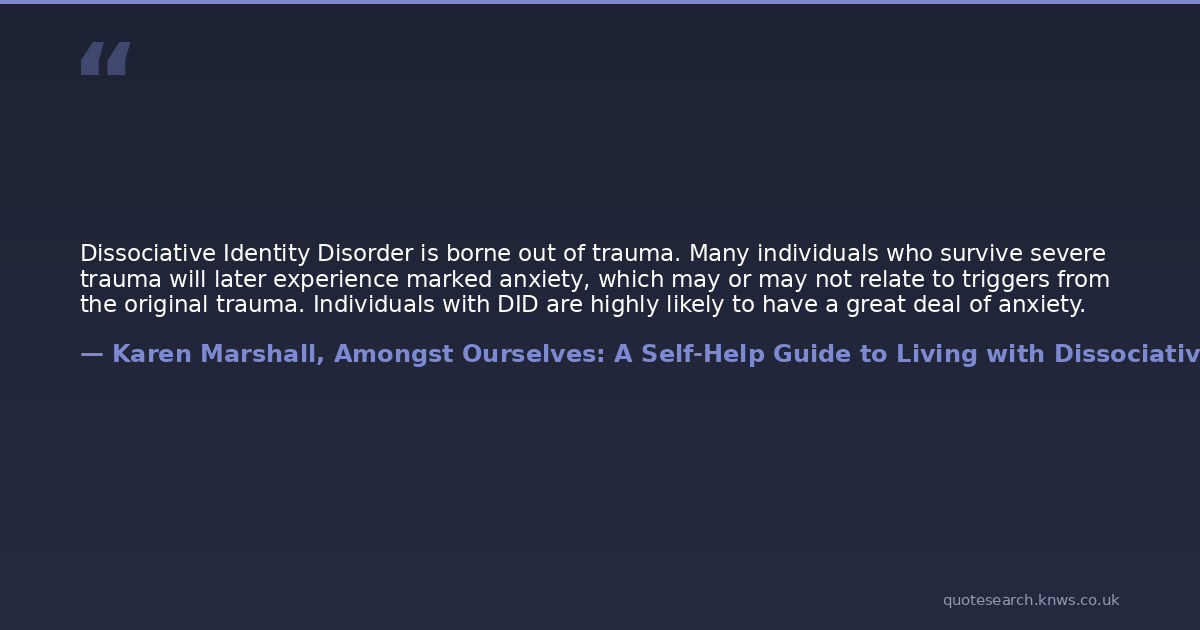 Dissociative Identity Disorder is borne out of trauma. Many individuals who survive severe trauma will later experience marked anxiety, which may or may not relate to triggers from the original trauma. Individuals with DID are highly likely to have a great deal of anxiety.