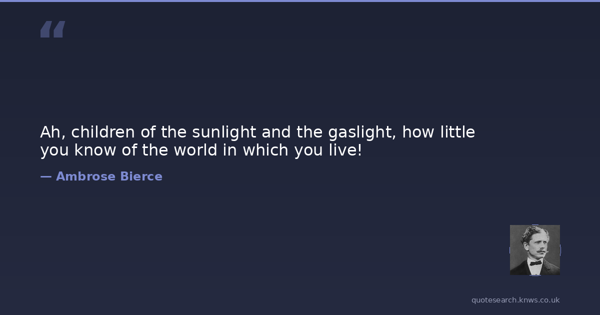 Ah, children of the sunlight and the gaslight, how little you know of the world in which you live!