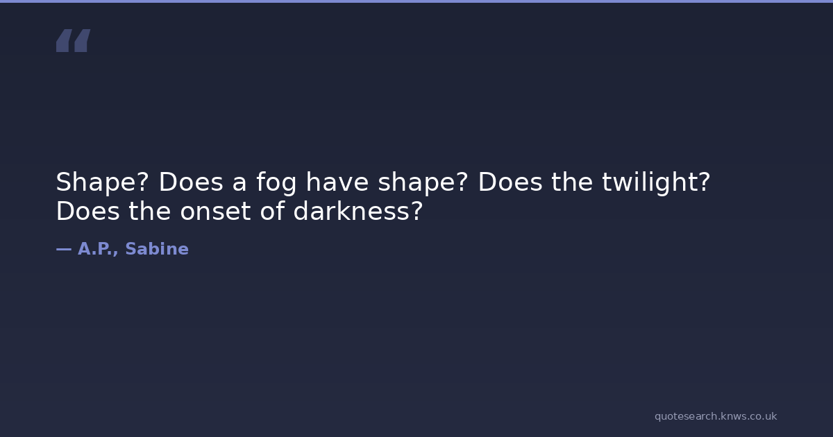 Shape? Does a fog have shape? Does the twilight? Does the onset of darkness? darkness fog twilight Download Image Share on X Share on Facebook Copy Link