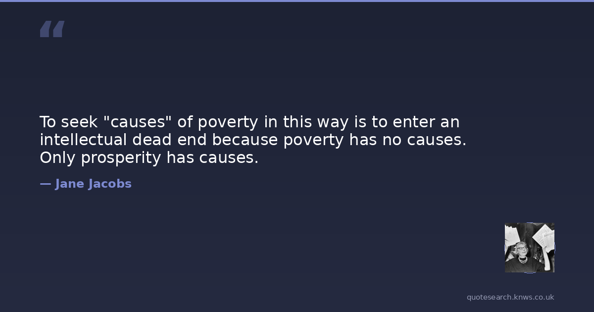 To seek "causes" of poverty in this way is to enter an intellectual dead end because poverty has no causes. Only prosperity has causes.