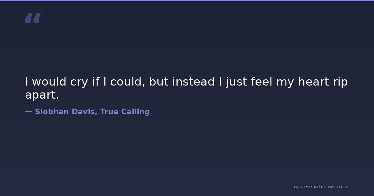 I would cry if I could, but instead I just feel my heart rip apart. dystopian-fiction heartbreak love-despair science-fiction-romance Download Image Share on X Share on Facebook Copy Link
