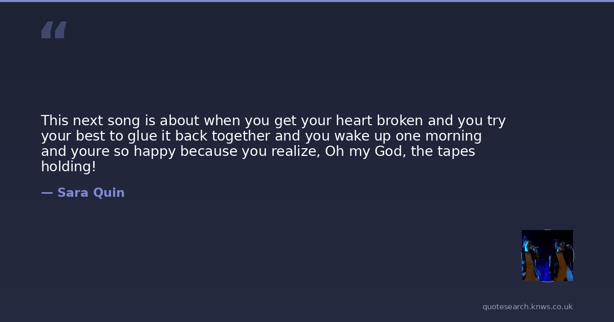 This next song is about when you get your heart broken and you try your best to glue it back together and you wake up one morning and youre so happy because you realize, Oh my God, the tapes holding!