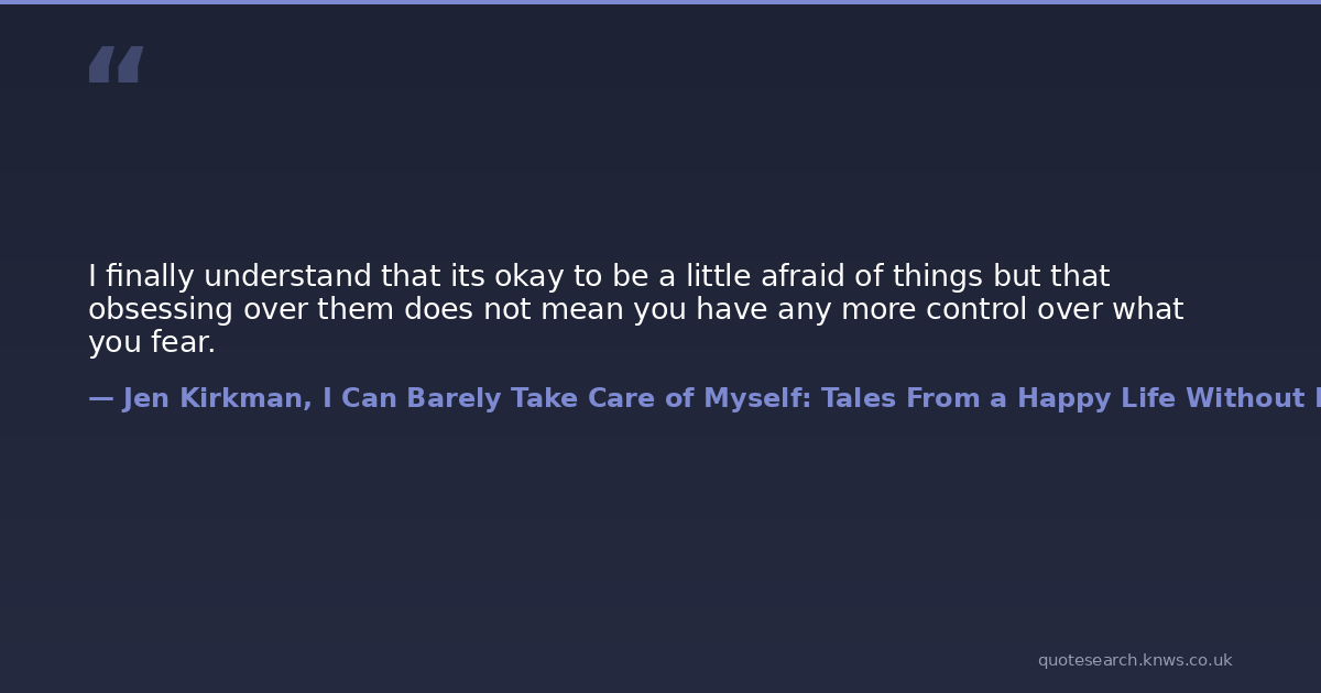 I finally understand that its okay to be a little afraid of things but that obsessing over them does not mean you have any more control over what you fear.