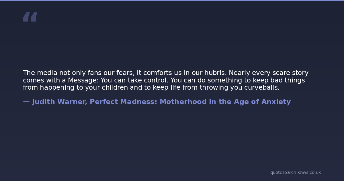 The media not only fans our fears, it comforts us in our hubris. Nearly every scare story comes with a Message: You can take control. You can do something to keep bad things from happening to your children and to keep life from throwing you curveballs.