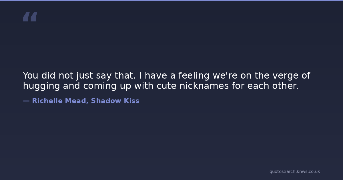 You did not just say that. I have a feeling we're on the verge of hugging and coming up with cute nicknames for each other.