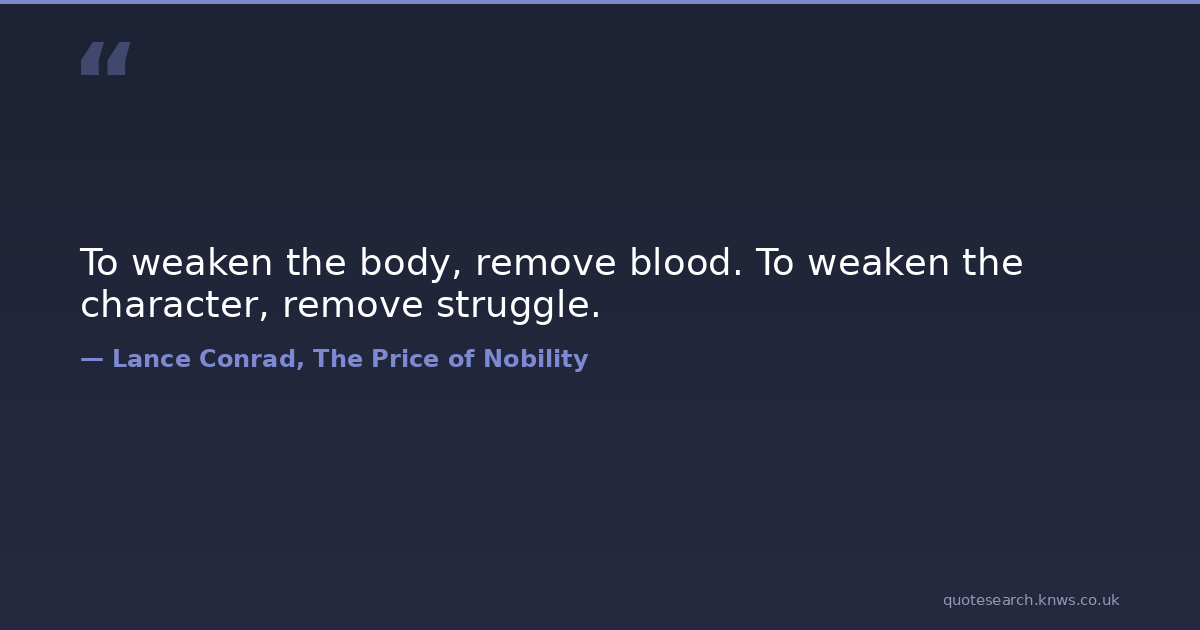 To weaken the body, remove blood. To weaken the character, remove struggle.