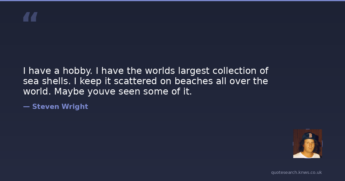 I have a hobby. I have the worlds largest collection of sea shells. I keep it scattered on beaches all over the world. Maybe youve seen some of it.