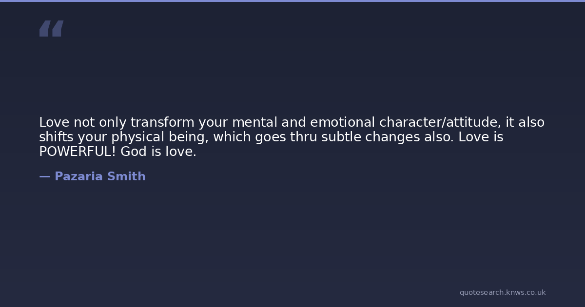 Love not only transform your mental and emotional character/attitude, it also shifts your physical being, which goes thru subtle changes also. Love is POWERFUL! God is love.