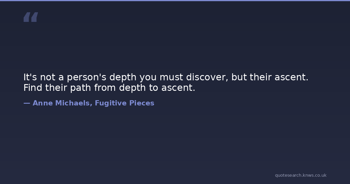 It's not a person's depth you must discover, but their ascent. Find their path from depth to ascent.