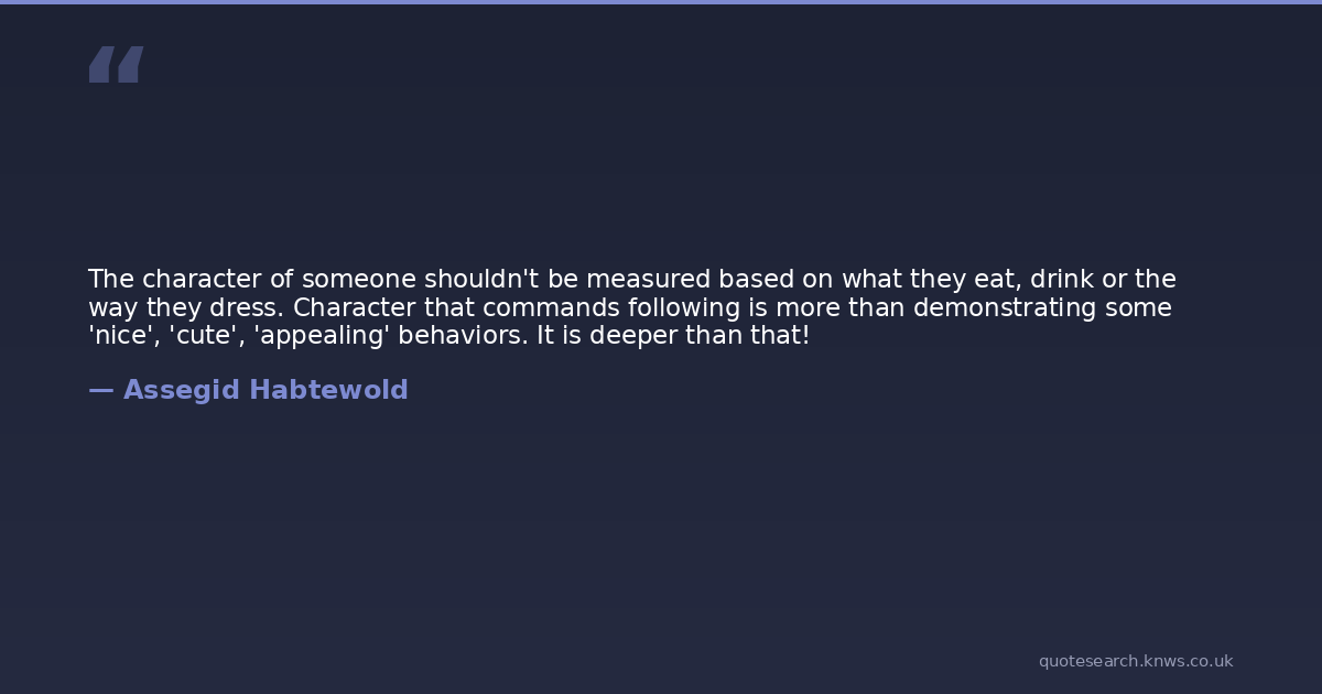 The character of someone shouldn't be measured based on what they eat, drink or the way they dress. Character that commands following is more than demonstrating some 'nice', 'cute', 'appealing' behaviors. It is deeper than that!