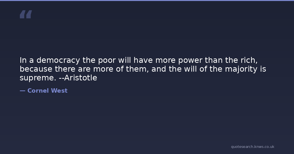 In a democracy the poor will have more power than the rich, because there are more of them, and the will of the majority is supreme. --Aristotle