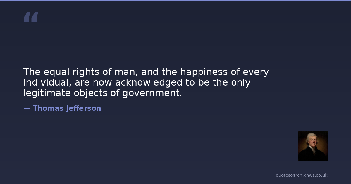 The equal rights of man, and the happiness of every individual, are now acknowledged to be the only legitimate objects of government.
