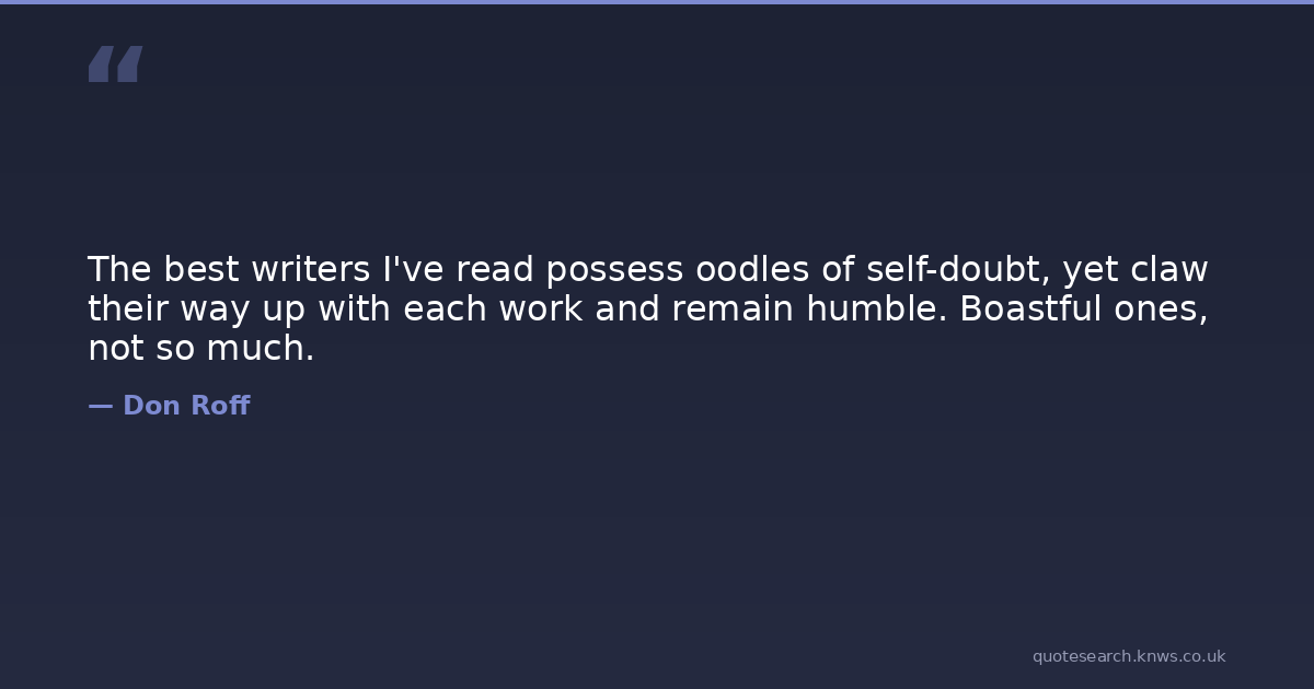 The best writers I've read possess oodles of self-doubt, yet claw their way up with each work and remain humble. Boastful ones, not so much.