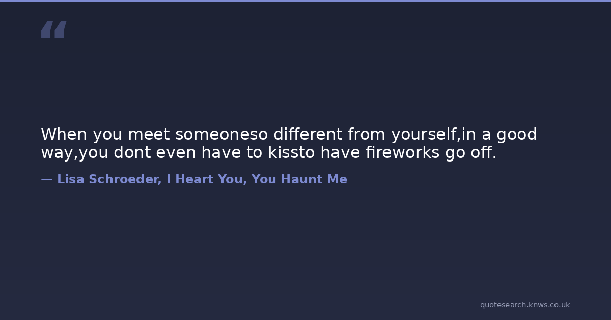 When you meet someoneso different from yourself,in a good way,you dont even have to kissto have fireworks go off.