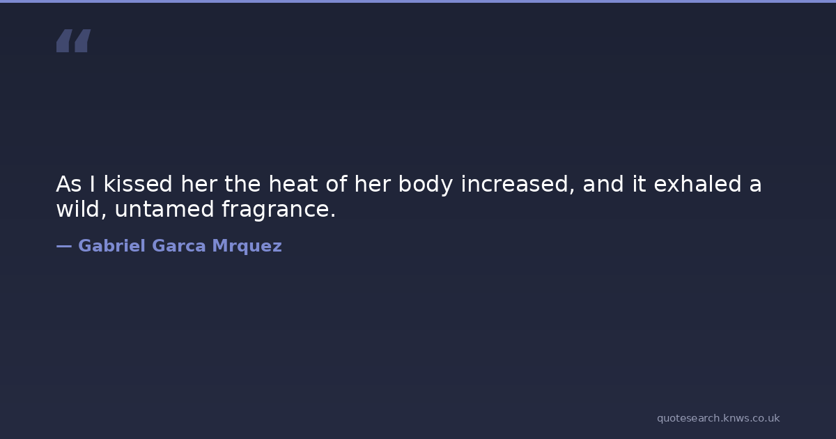 As I kissed her the heat of her body increased, and it exhaled a wild, untamed fragrance.
