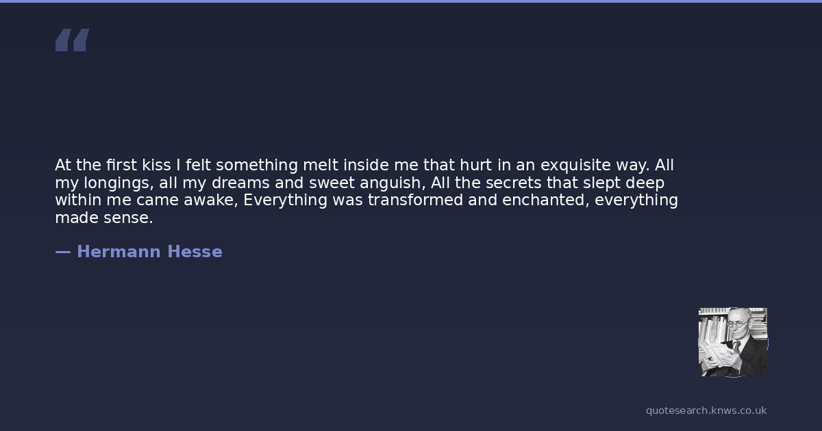At the first kiss I felt something melt inside me that hurt in an exquisite way. All my longings, all my dreams and sweet anguish, All the secrets that slept deep within me came awake, Everything was transformed and enchanted, everything made sense.