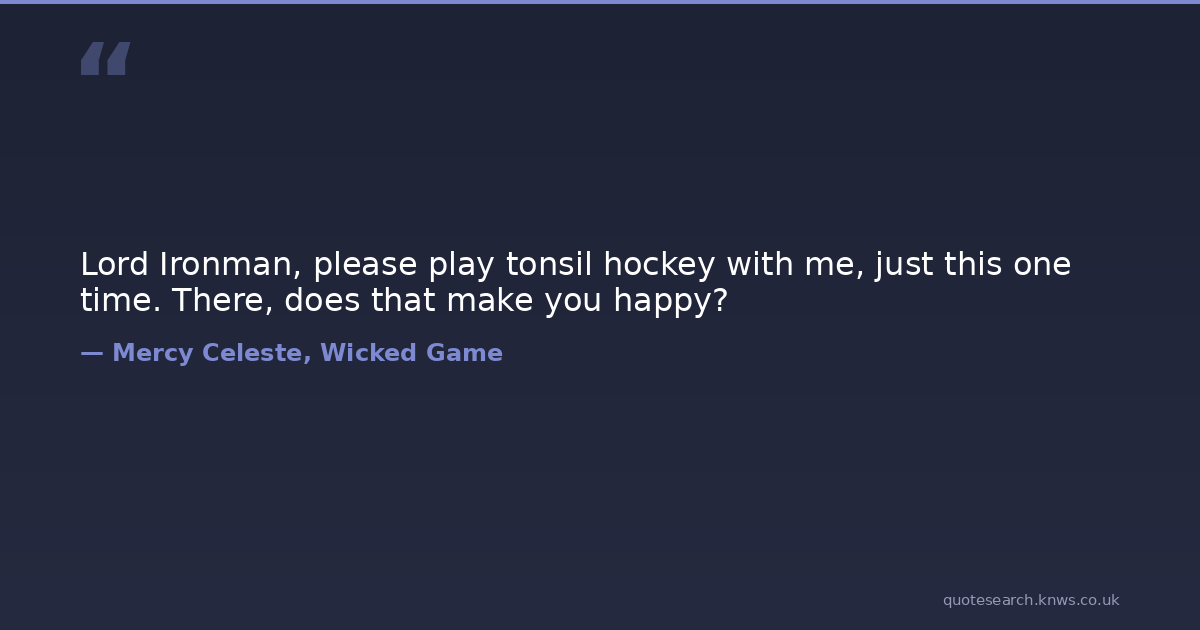 Lord Ironman, please play tonsil hockey with me, just this one time. There, does that make you happy? kiss sarcasm Download Image Share on X Share on Facebook Copy Link