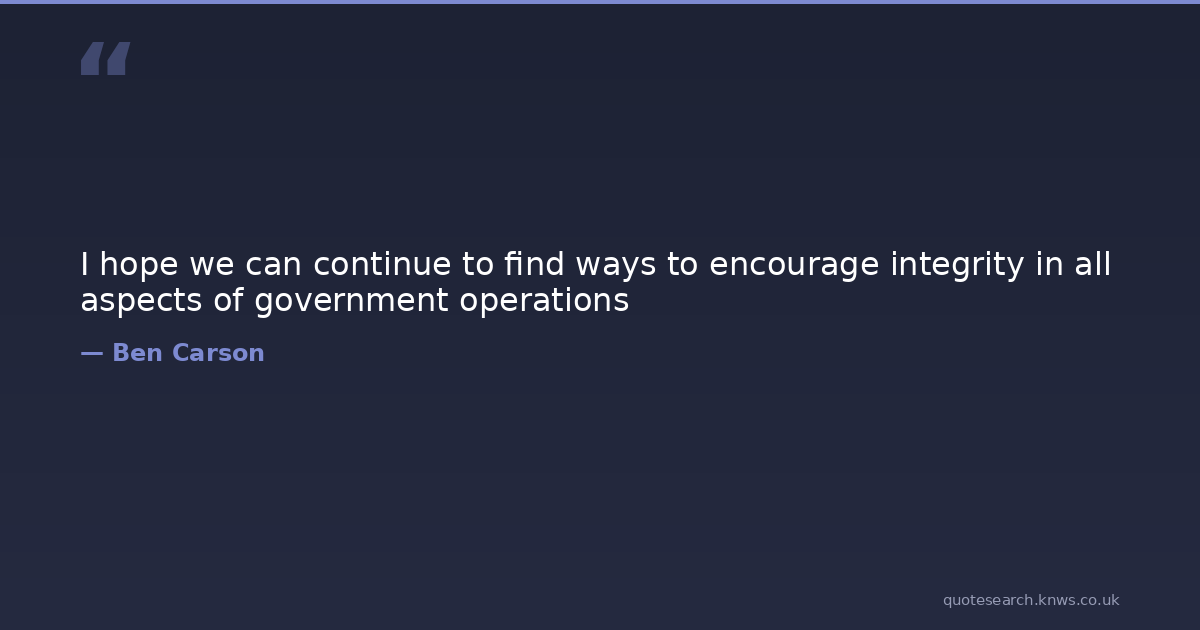 I hope we can continue to find ways to encourage integrity in all aspects of government operations