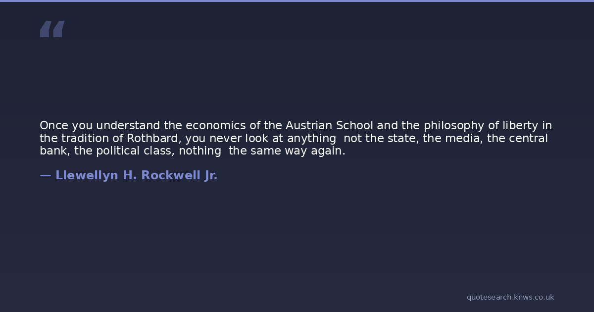 Once you understand the economics of the Austrian School and the philosophy of liberty in the tradition of Rothbard, you never look at anything not the state, the media, the central bank, the political class, nothing the same way again.