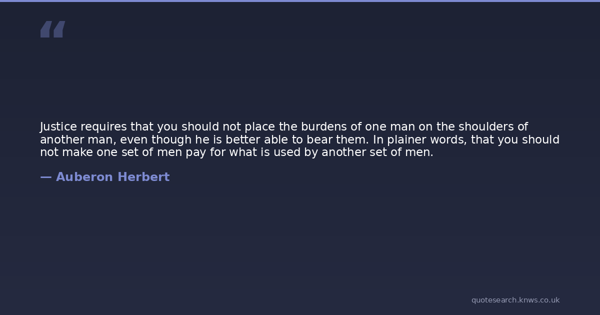 Justice requires that you should not place the burdens of one man on the shoulders of another man, even though he is better able to bear them. In plainer words, that you should not make one set of men pay for what is used by another set of men.