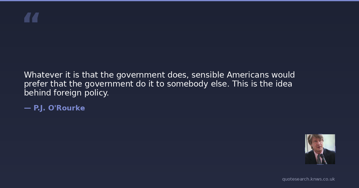 Whatever it is that the government does, sensible Americans would prefer that the government do it to somebody else. This is the idea behind foreign policy.