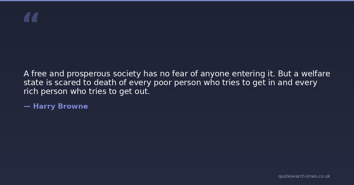 A free and prosperous society has no fear of anyone entering it. But a welfare state is scared to death of every poor person who tries to get in and every rich person who tries to get out.