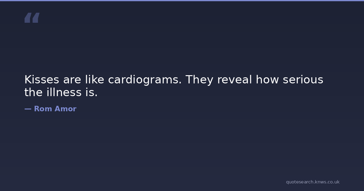 Kisses are like cardiograms. They reveal how serious the illness is. illness kiss kisses Download Image Share on X Share on Facebook Copy Link