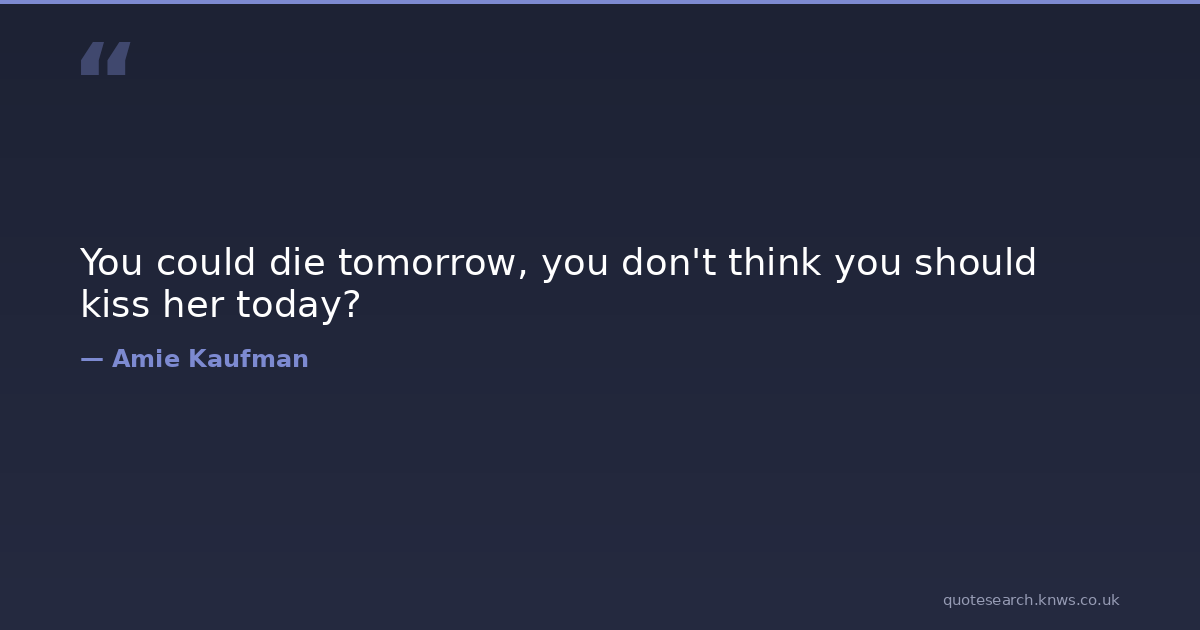You could die tomorrow, you don't think you should kiss her today?