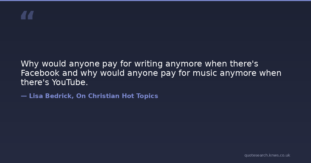 Why would anyone pay for writing anymore when there's Facebook and why would anyone pay for music anymore when there's YouTube.