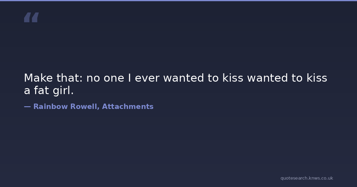 Make that: no one I ever wanted to kiss wanted to kiss a fat girl. fat girl kiss Download Image Share on X Share on Facebook Copy Link