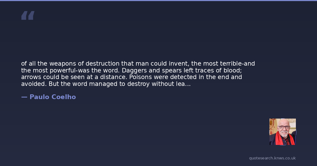 of all the weapons of destruction that man could invent, the most terrible-and the most powerful-was the word. Daggers and spears left traces of blood; arrows could be seen at a distance. Poisons were detected in the end and avoided. But the word managed to destroy without leaving clues.