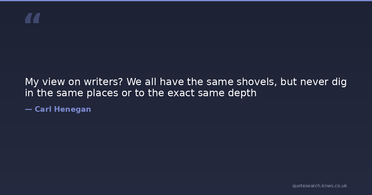 My view on writers? We all have the same shovels, but never dig in the same places or to the exact same depth
