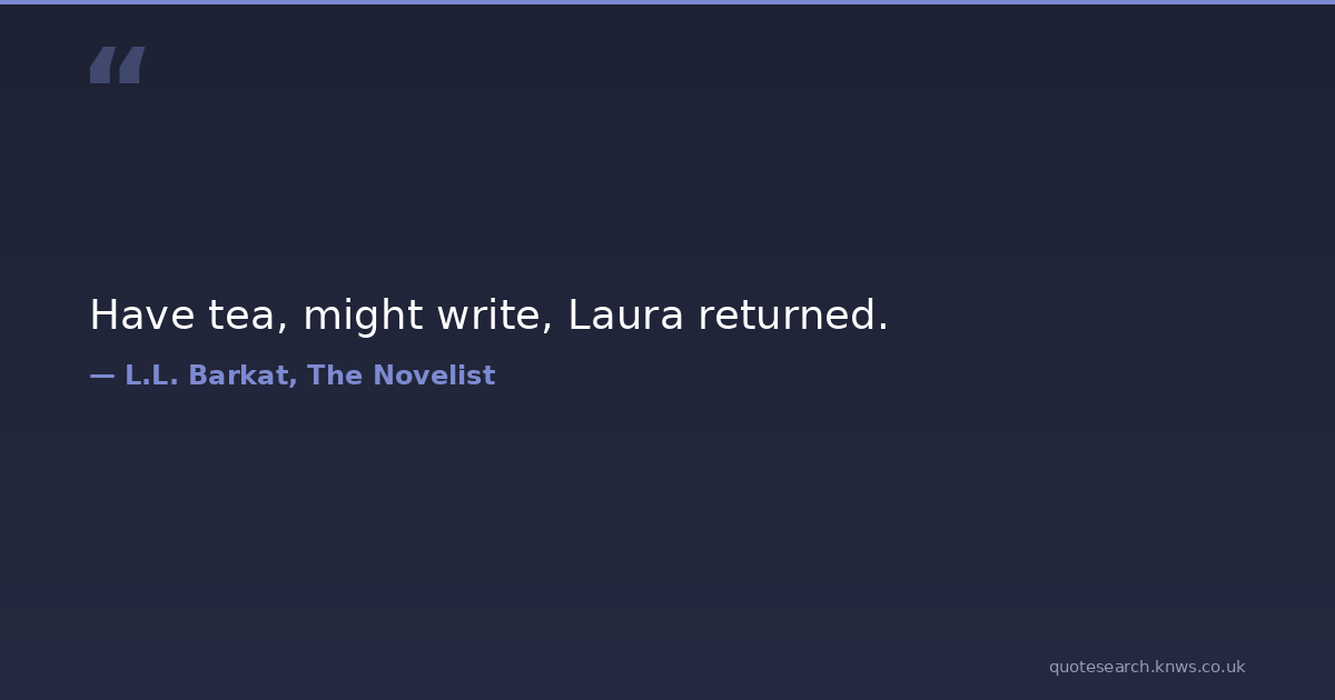 Have tea, might write, Laura returned. tea writers writing Download Image Share on X Share on Facebook Copy Link
