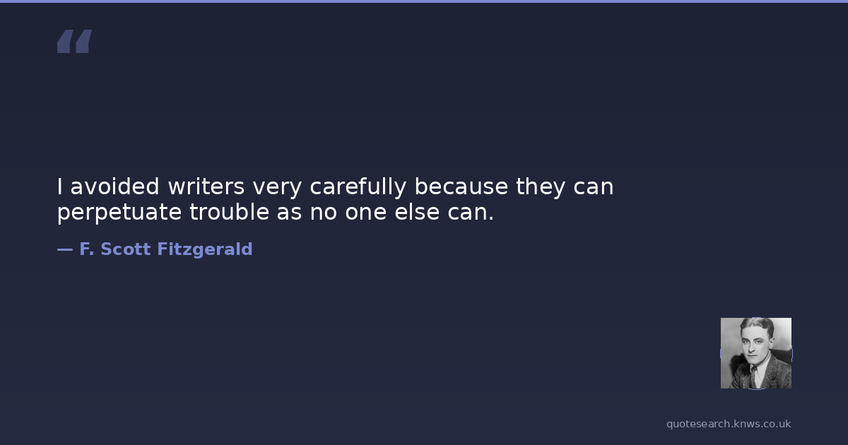 I avoided writers very carefully because they can perpetuate trouble as no one else can.