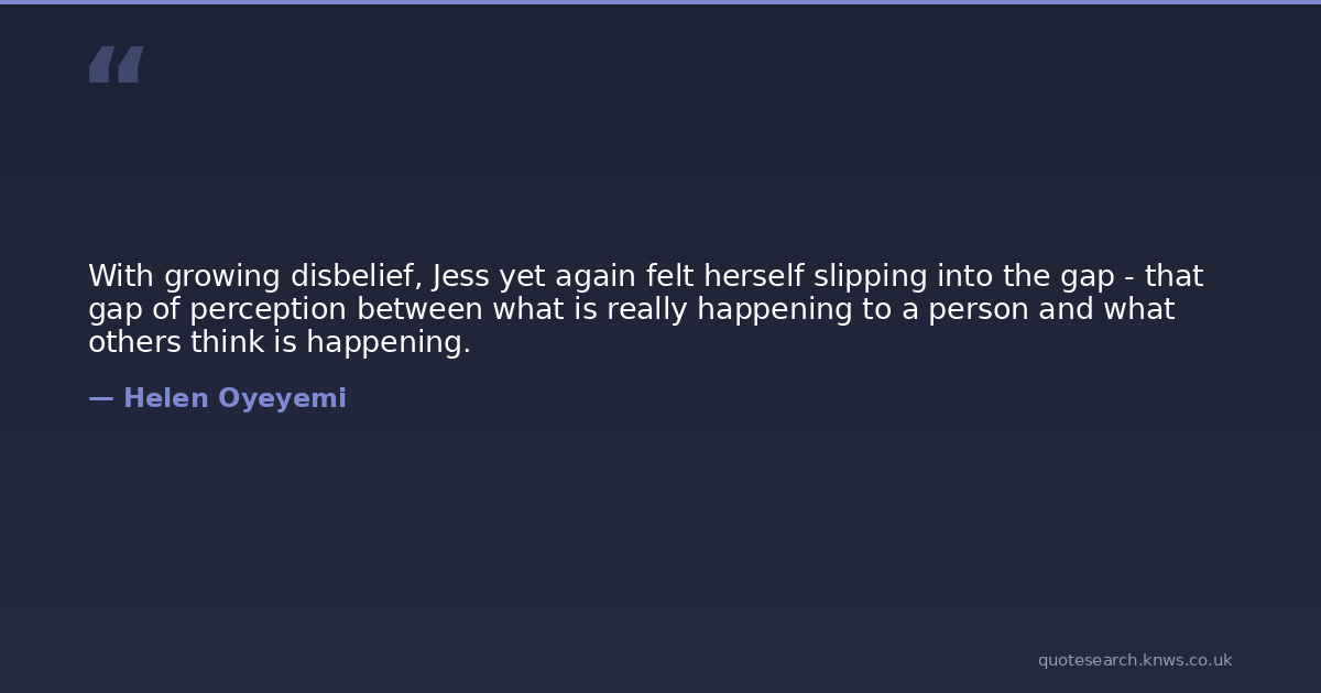 With growing disbelief, Jess yet again felt herself slipping into the gap - that gap of perception between what is really happening to a person and what others think is happening.