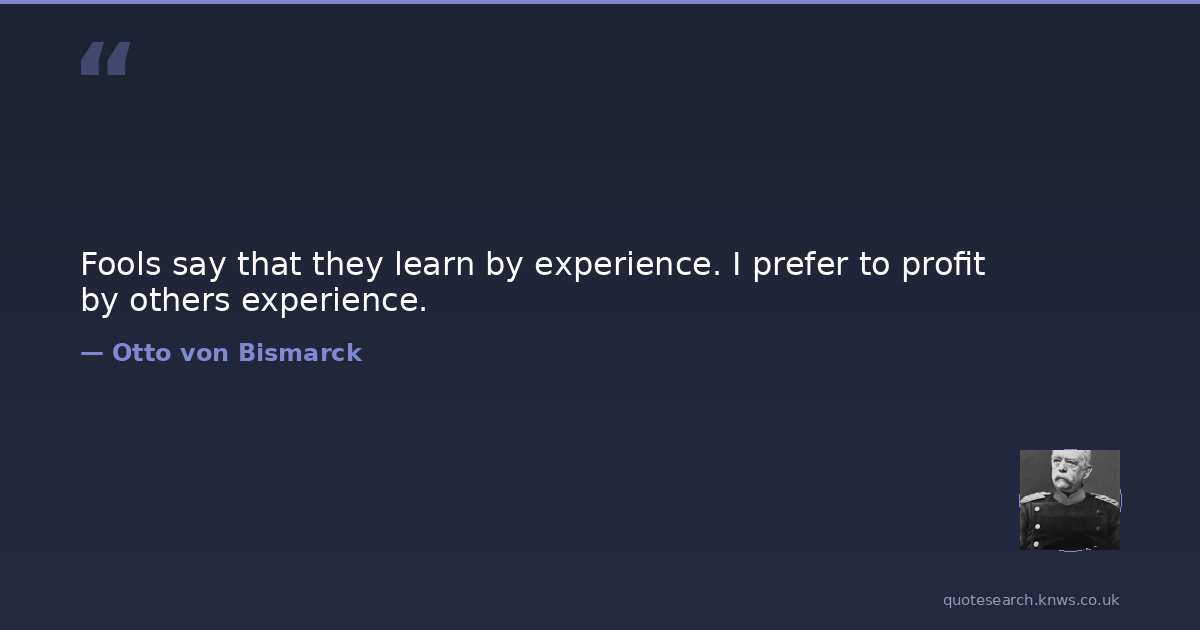 Fools say that they learn by experience. I prefer to profit by others experience.