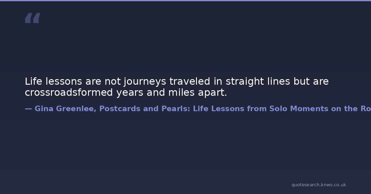 Life lessons are not journeys traveled in straight lines but are crossroadsformed years and miles apart.