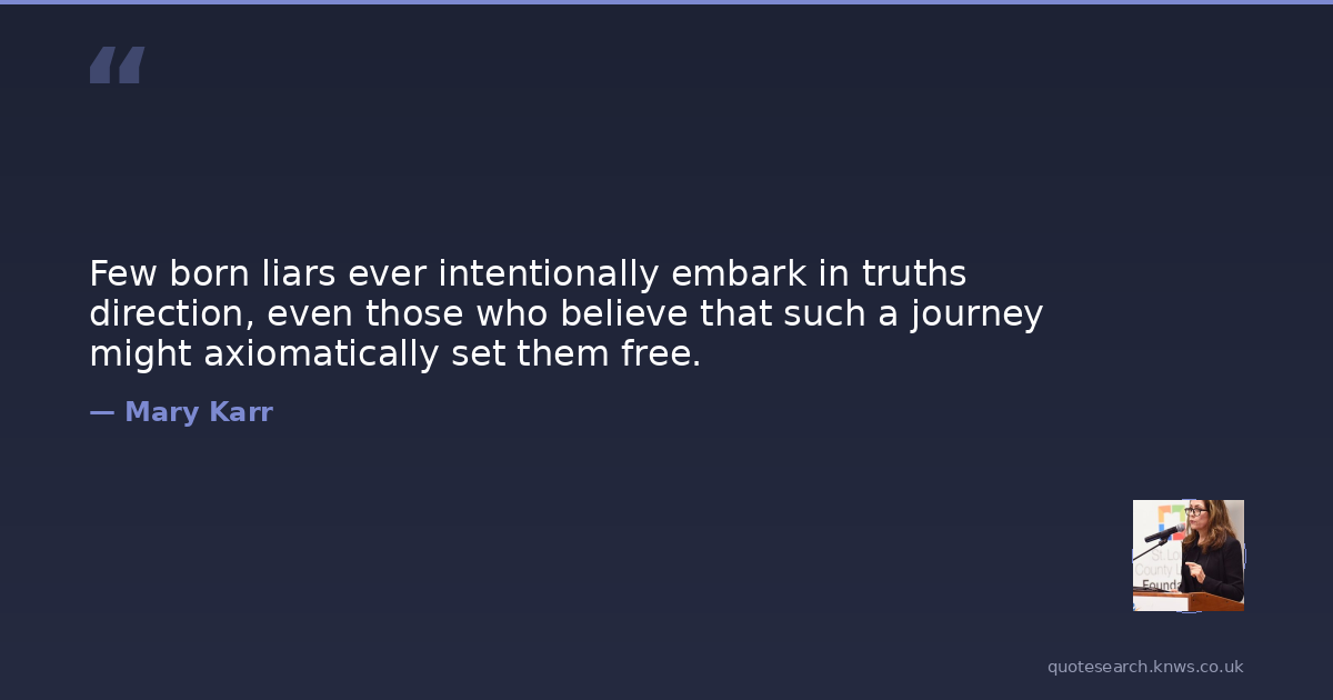 Mary Karr was American poet and essayist. Mary Karr is an American poet, essayist and memoirist from East Texas. She is widely noted for her 1995 bestselling memoir The Liars' Club. Read more on Wikipedia →