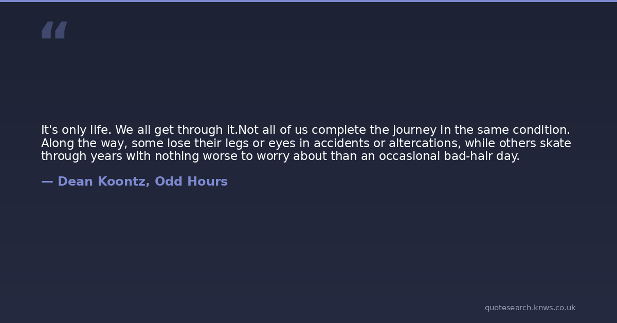 It's only life. We all get through it.Not all of us complete the journey in the same condition. Along the way, some lose their legs or eyes in accidents or altercations, while others skate through years with nothing worse to worry about than an occasional bad-hair day.