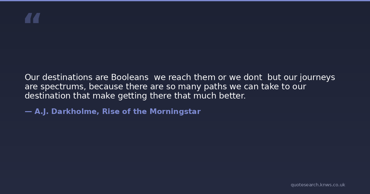 Our destinations are Booleans we reach them or we dont but our journeys are spectrums, because there are so many paths we can take to our destination that make getting there that much better.