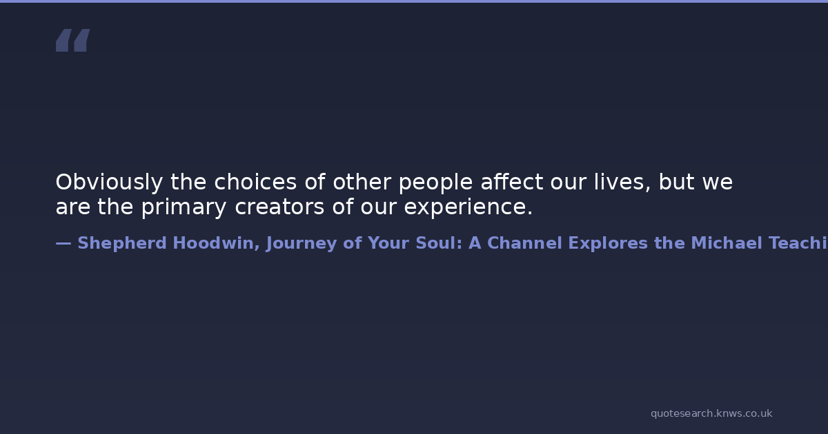 Obviously the choices of other people affect our lives, but we are the primary creators of our experience.