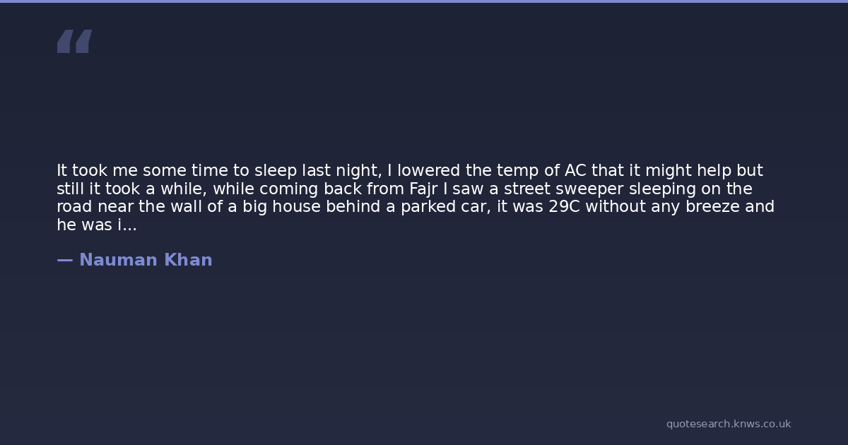 It took me some time to sleep last night, I lowered the temp of AC that it might help but still it took a while, while coming back from Fajr I saw a street sweeper sleeping on the road near the wall of a big house behind a parked car, it was 29C without any breeze and he was in deep sleep with snoring loud enough to be audible 10 feet away, surely our perception of things which will bestow us with peace is clouded