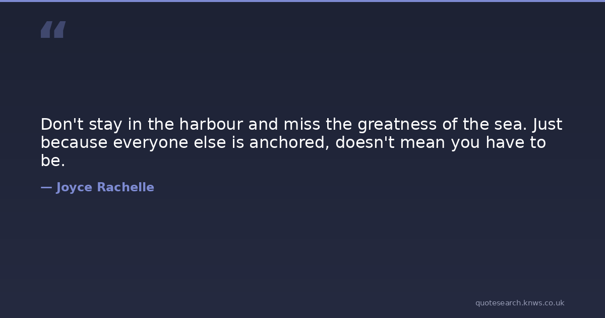 Don't stay in the harbour and miss the greatness of the sea. Just because everyone else is anchored, doesn't mean you have to be.