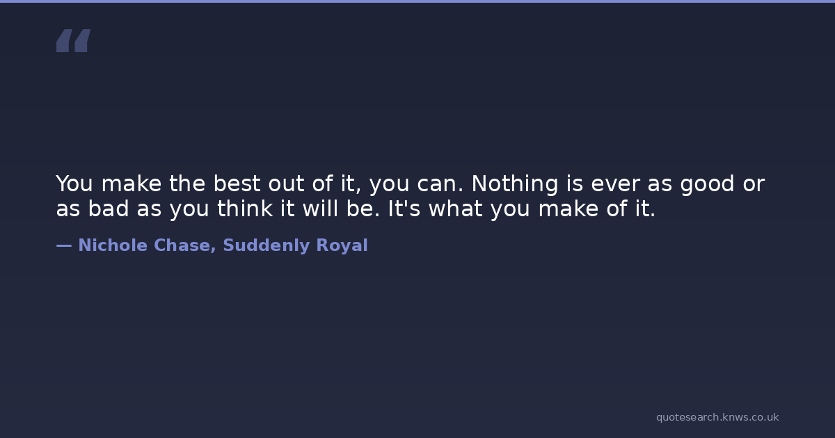 You make the best out of it, you can. Nothing is ever as good or as bad as you think it will be. It's what you make of it.