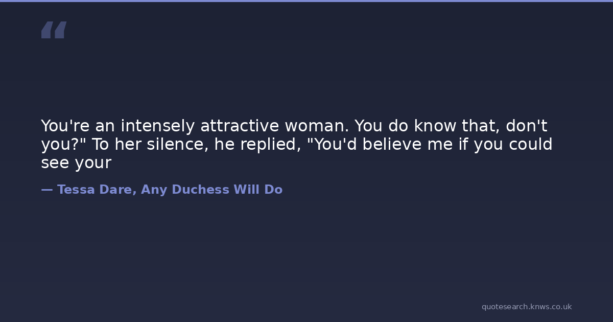 You're an intensely attractive woman. You do know that, don't you?" To her silence, he replied, "You'd believe me if you could see your